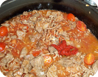 We started by browning the meat.